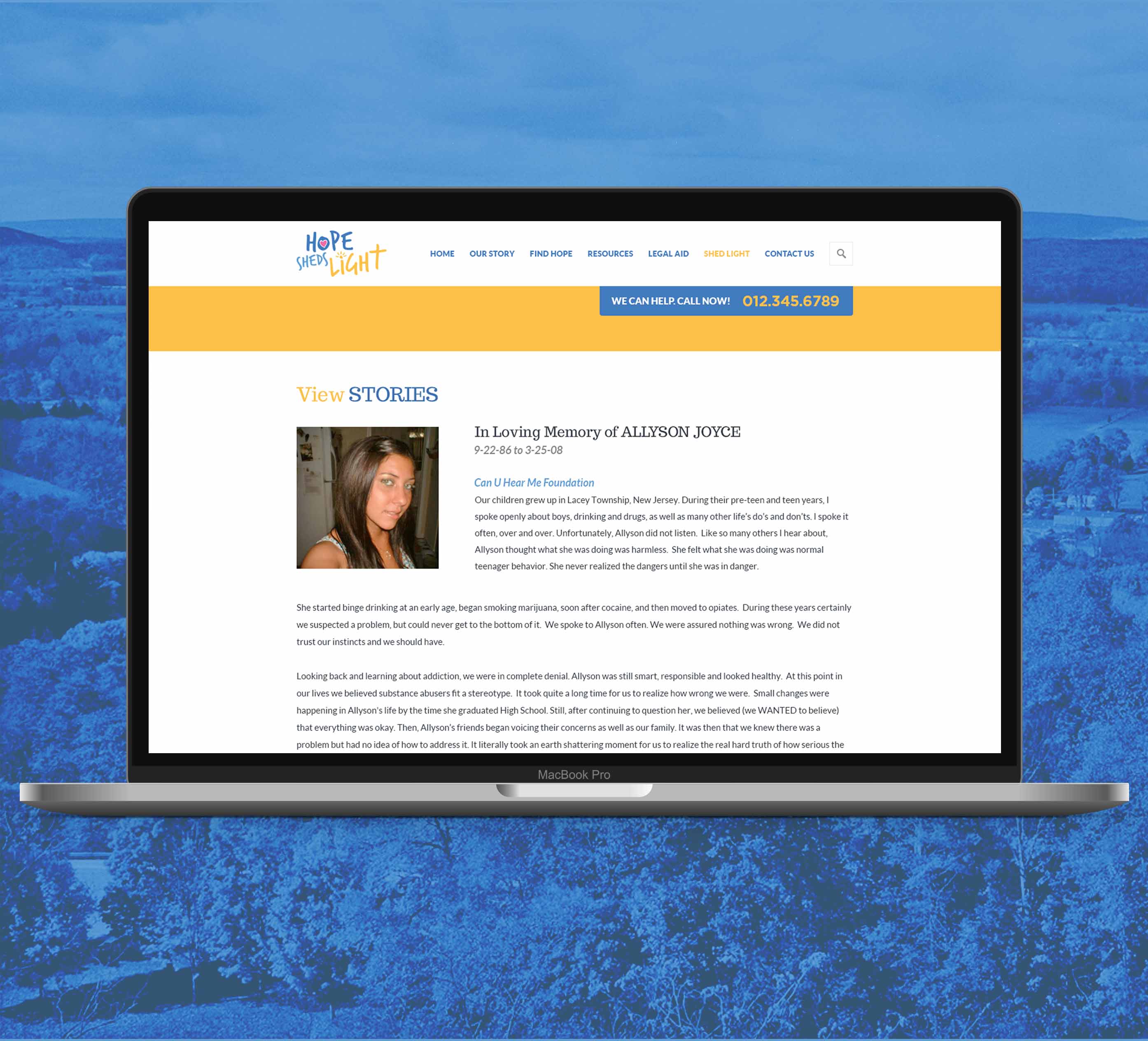 Substance abuse is a difficult struggle and a seldom discussed topic. Hope Sheds Light is an organization that strives to bring those issues to the public via their online initiative. Hope Sheds Light was started after the Rosetto family lost their son Marc to a hard-fought battle against substance abuse in 2012. The Rosetto family struggled to find help, which encouraged them to establish this outreach for those with who has lost family and friends to addiction problems. Often victims and their supporters feel isolated, ashamed, overwhelmed and hopeless, Hope Sheds Light’s website was produced to provide direction, digital guides and steps toward recovery. From support groups to community event postings, the website has become a resource where individuals and families could come for help.