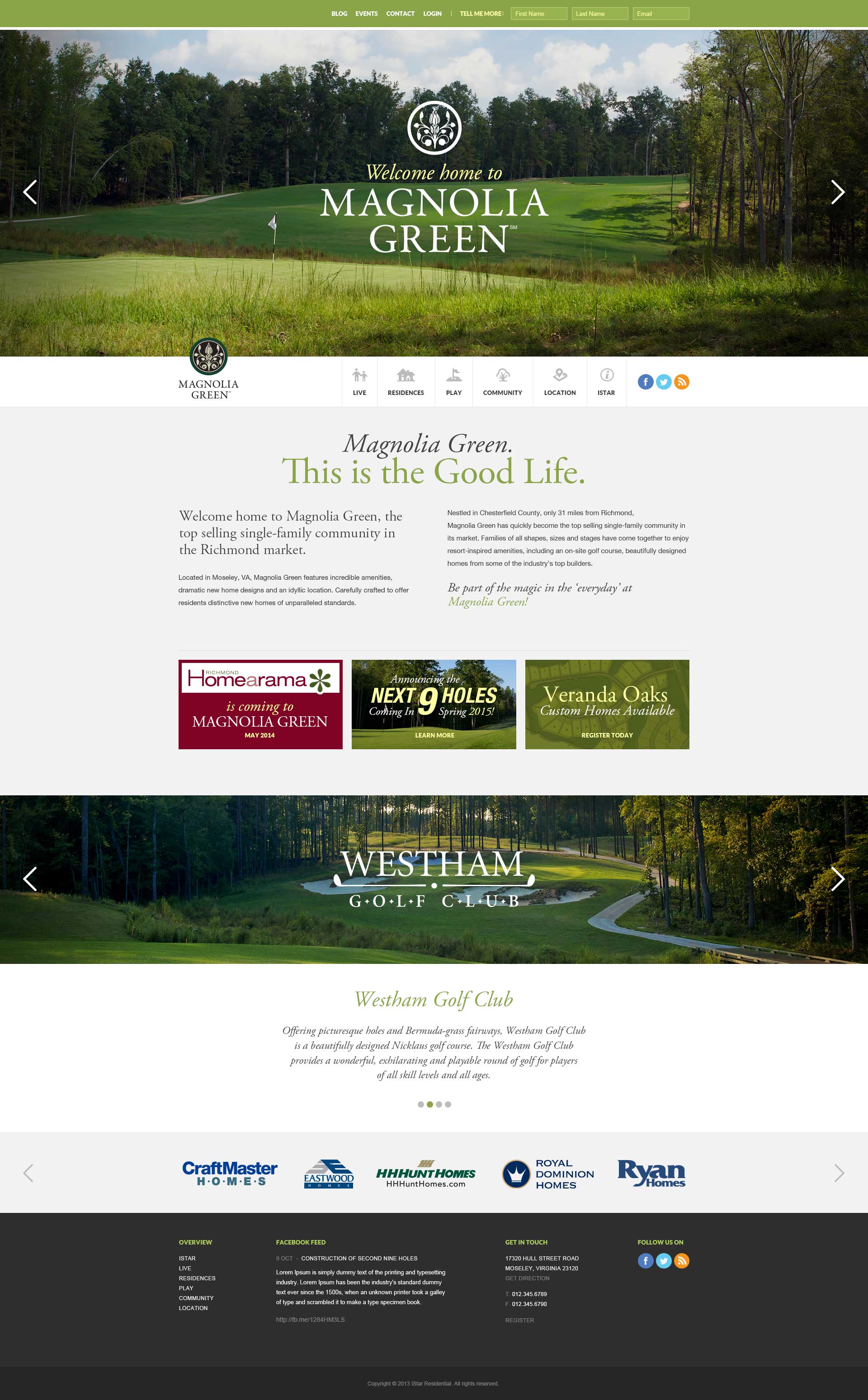 Magnolia Green is an iStar Residential community, located in Moseley, Virginia, less than 30 minutes outside of Richmond. The client’s goal was to market Magnolia Green to a demographic of families with diverse lifestyles unique to central Virginia. Not only was the proximity to a major city a key selling point but residents also have access to the Magnolia Green Golf Club, an impeccably designed Nicklaus golf course. iStar Residential is one of the largest investors in luxury condominium, multifamily and master-planned residential developments throughout the east coast United States.