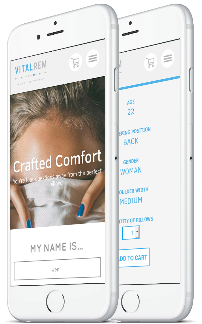 With the goal of disrupting the sleep industry, Vital REM has reimagined an essential sleep accessory. Introducing an innovative way to select the best pillow for you through their sleep pattern quiz. The quiz results generate out the recommended sleep configuration as a purchasable product for the user. Several doctors were trusted to develop a new series of pillows and have sourced the best materials in microfibers and memory foam to design a unique shape that mimics your shoulder dimensions and sleeping behaviors. Compared to their competitors, the product is driven by more than science but curated per customer to tailor the best sleeping experience possible.